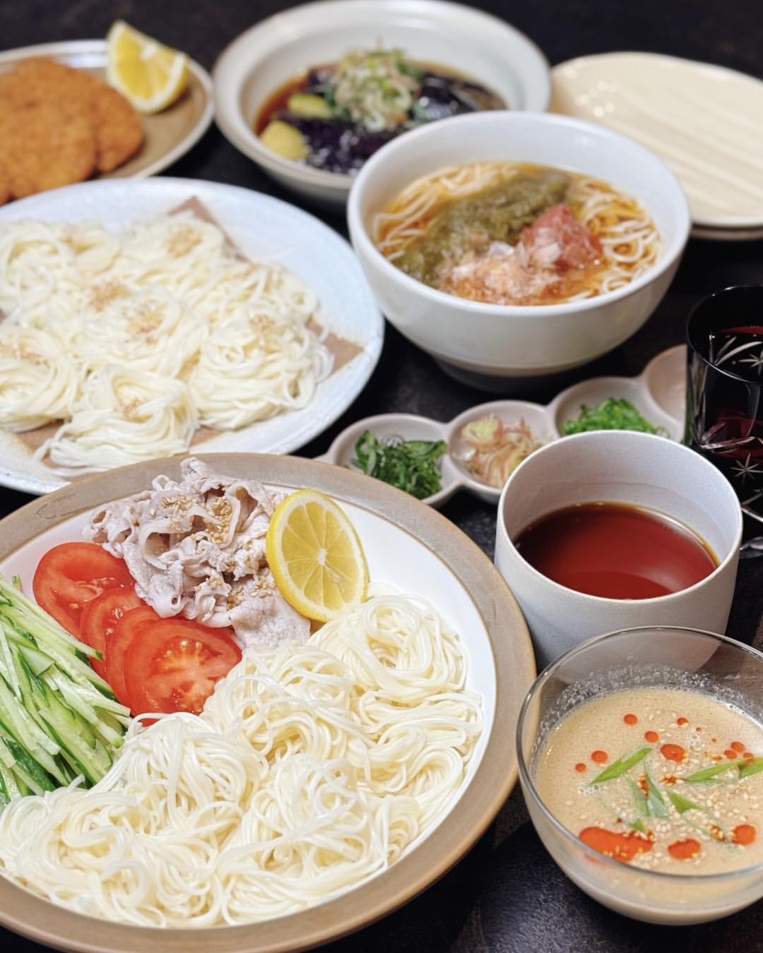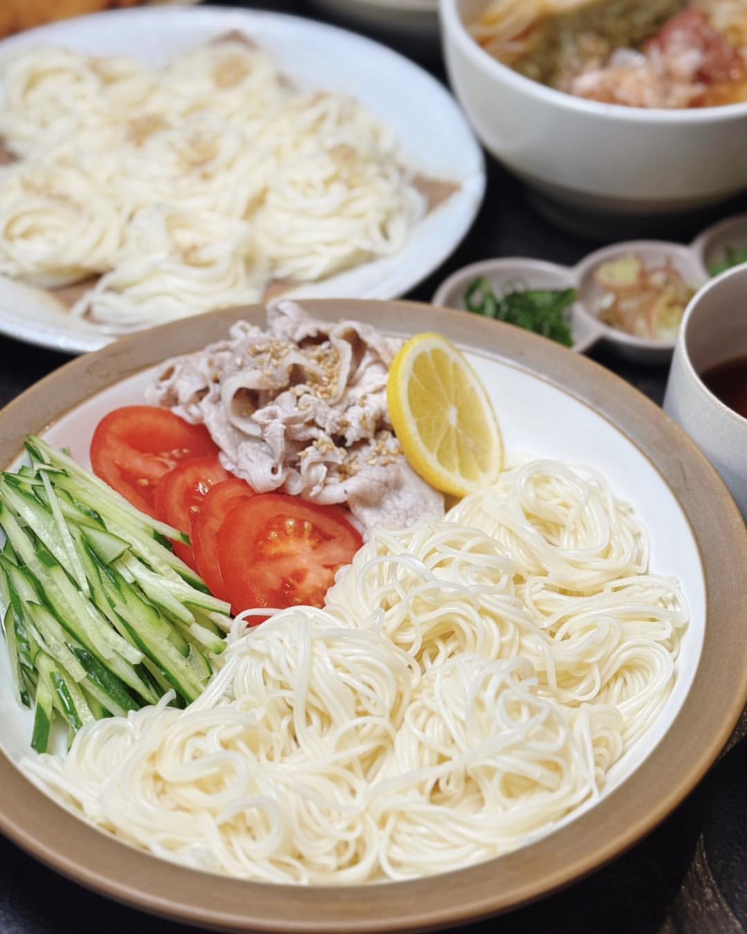 ✔︎ 豚しゃぶと夏野菜のゴマだれそうめん