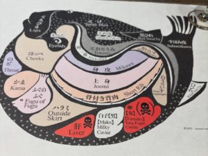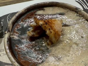 1番のお気に入りは、目の前で焼いてくれる焼きふぐです。