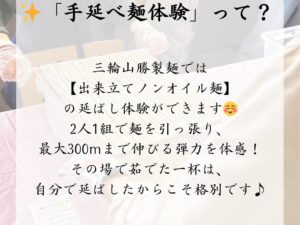 #手延べ麺体験 #体験型グルメ #出来立て麺 #ひっぱりたて体験 #お持ち帰りOK