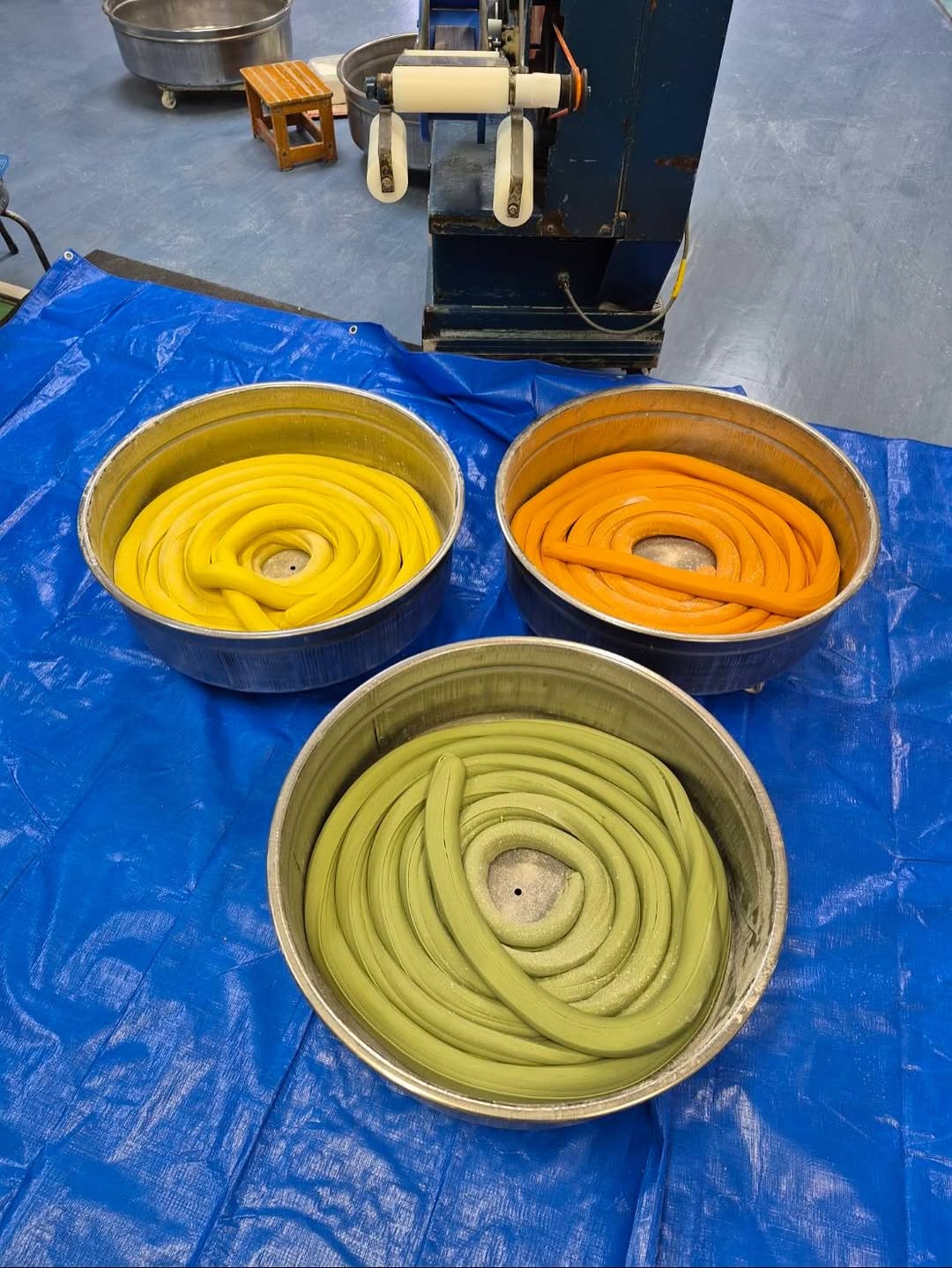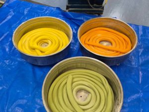 3色が3層になっている、ノンオイル製法で作った当社オリジナル「半生みいろ麺」!!