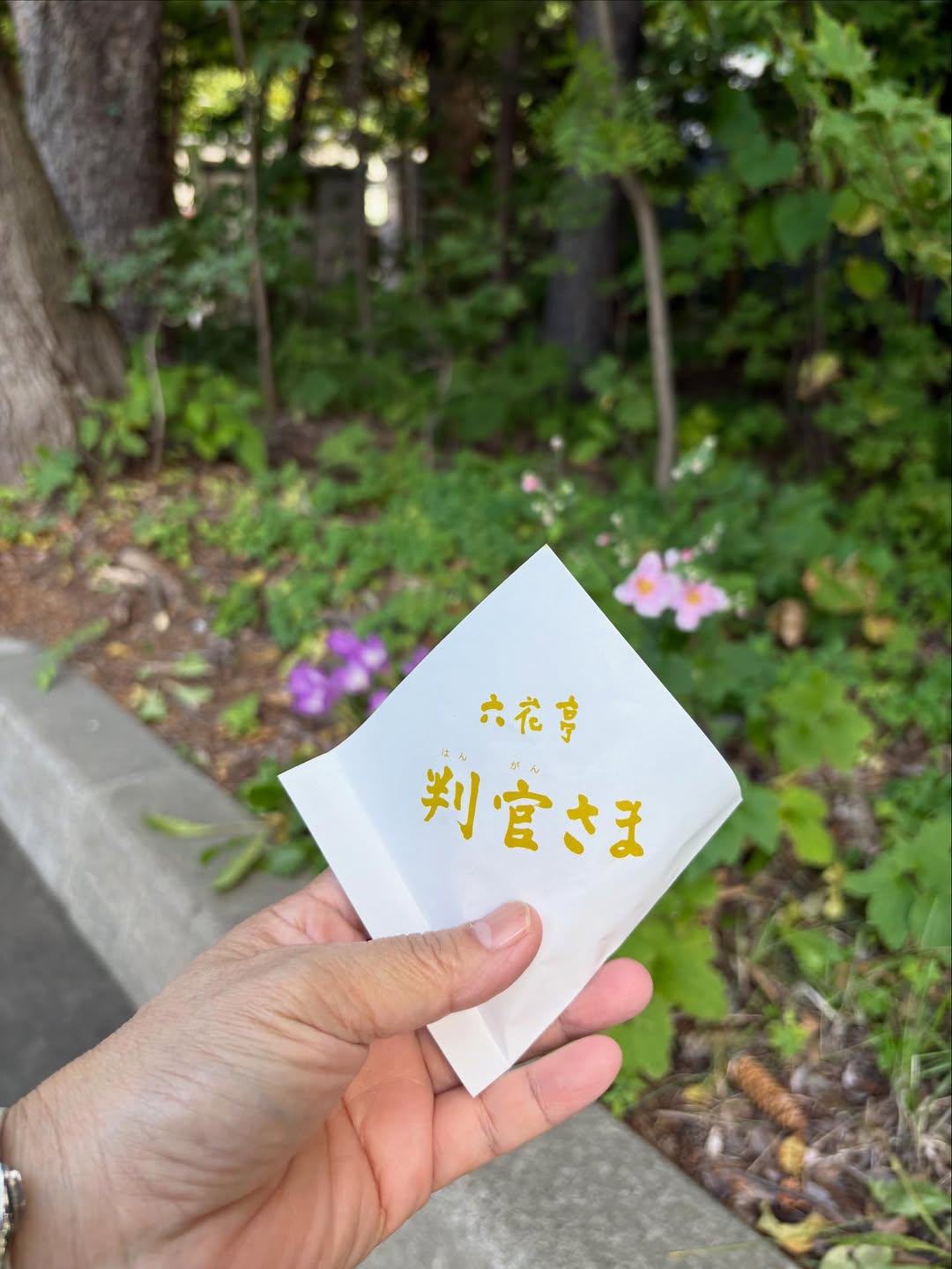 境内のすぐ側の六花亭で「判官さま」とほうじ茶で一服🍵