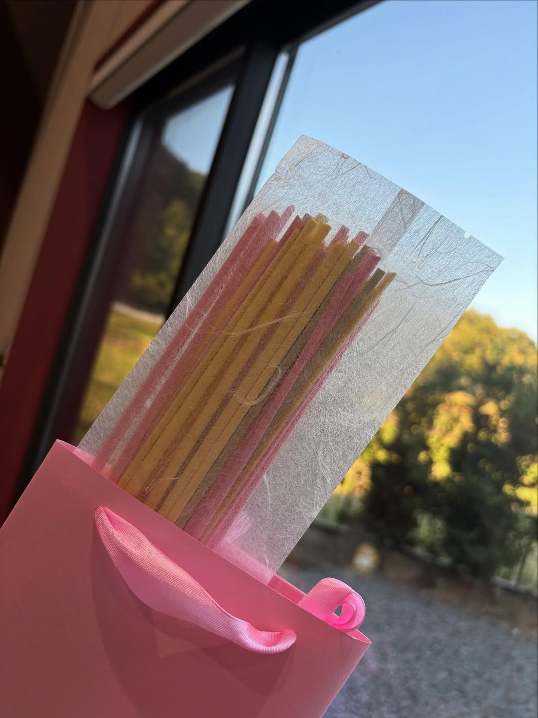 長さ50cm、5色の麺が入っていて、お食事された未就学のお子さま全員にプレゼントです🎉