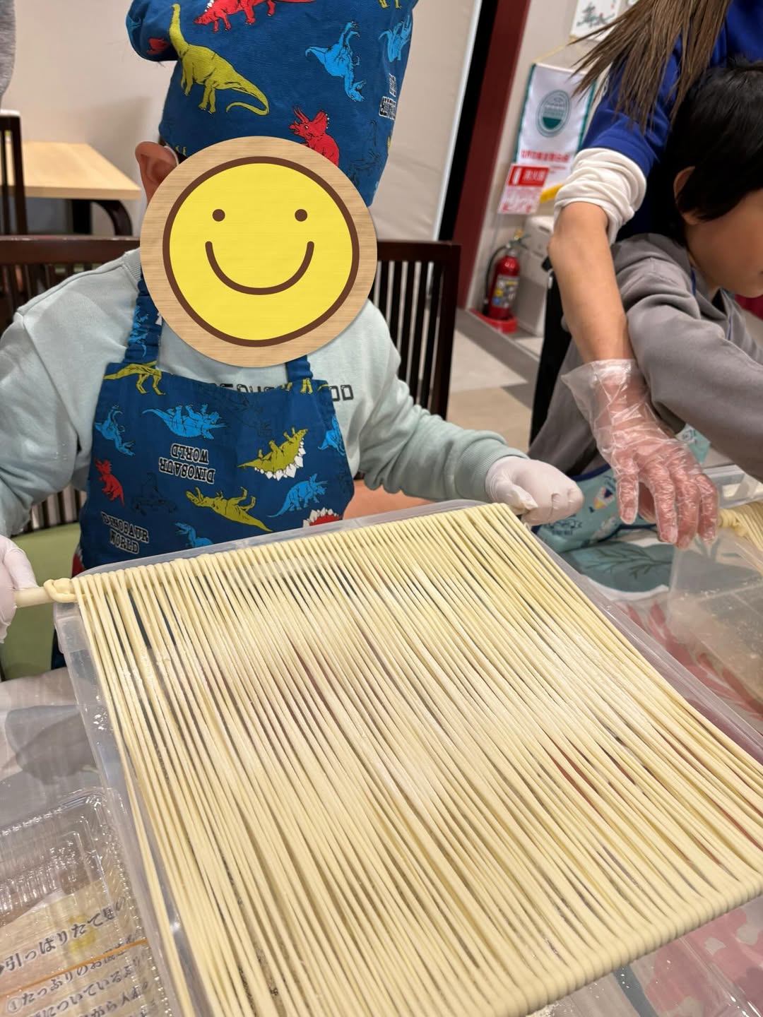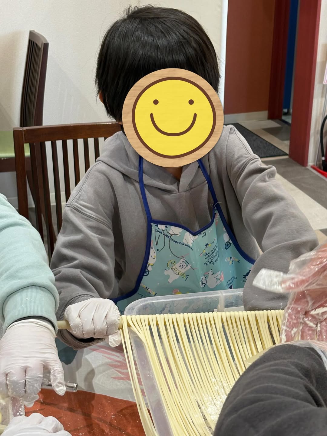 最寄り駅の近鉄朝倉駅から30分程かけて元気に徒歩で来られ、麺延ばし体験もお食事も、和気あいあいに楽しんでいただきました❗️