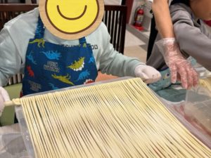 本日の「手延べ引っぱりたて麺延ばし体験」は、奈良YMCA様総勢8名でご来店です。
